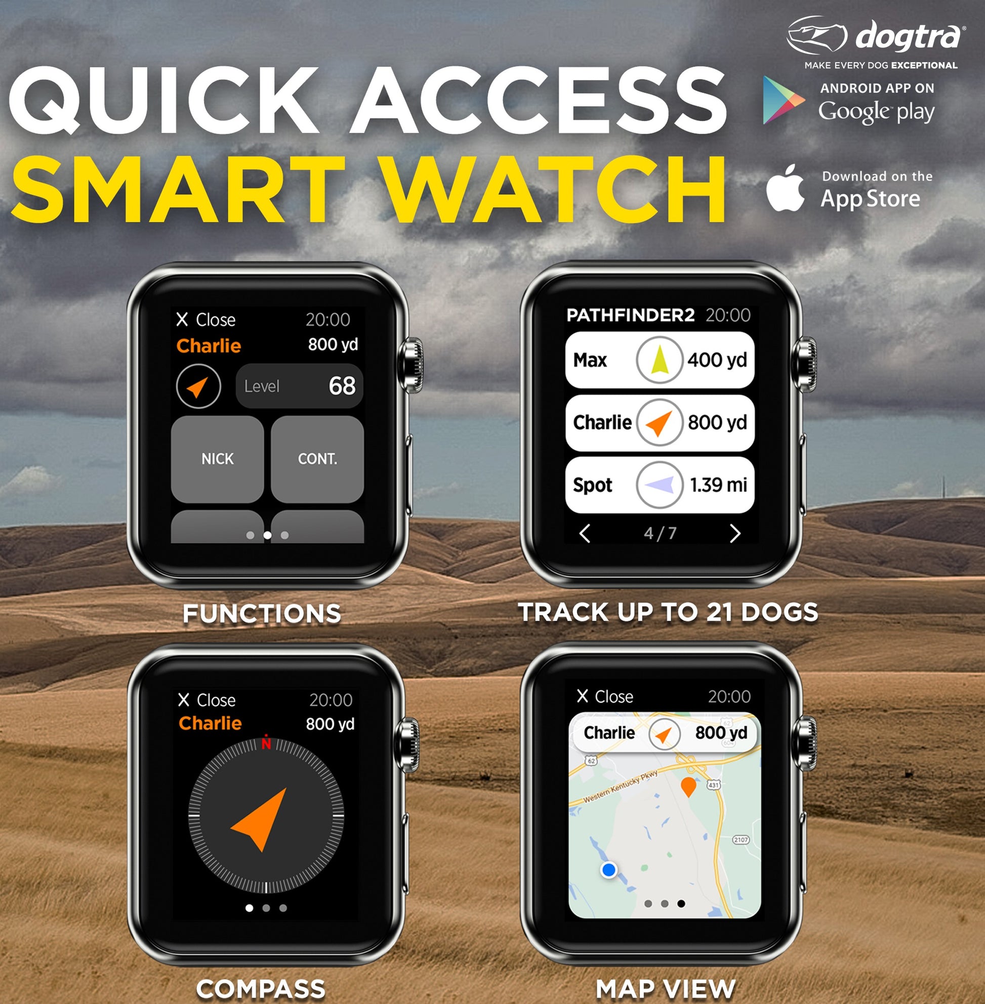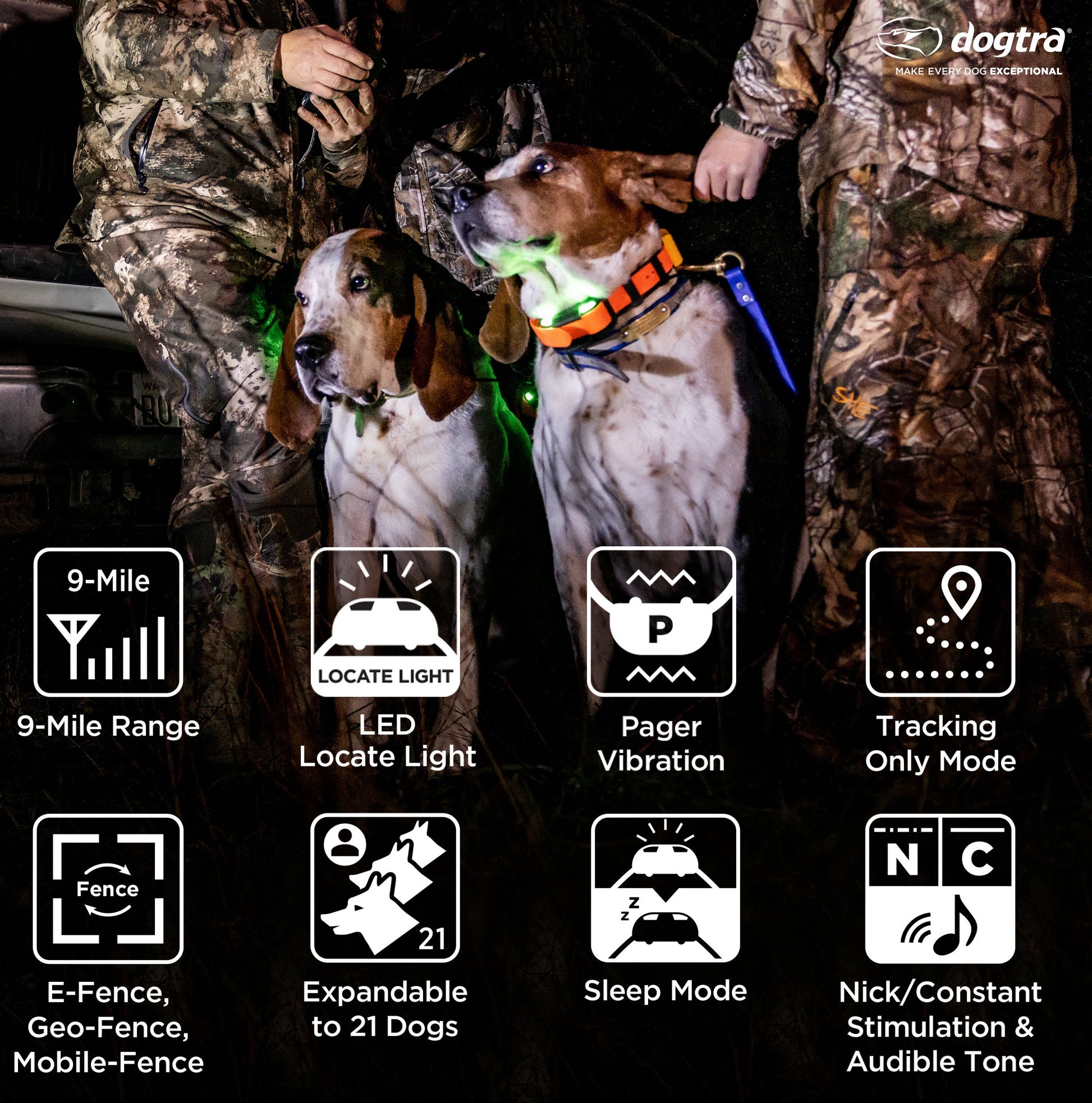 Explore more with your dogs on all outdoor activities from hiking to hunting with the newest GPS Dog Tracking and Training System. The new Dogtra PATHFINDER2 is a complete GPS tracking and training system featuring a newly redesigned FREE real time tracking and training app, tracking up to 21 dogs within a 9-mile range.* The new PATHFINDER2 system features the latest in dog tracking collars equipped with E-Collar training functions now including a LED Locate Light and Pager Vibration. The new GPS Connector is designed with a new E-Collar Function button for quicker response.