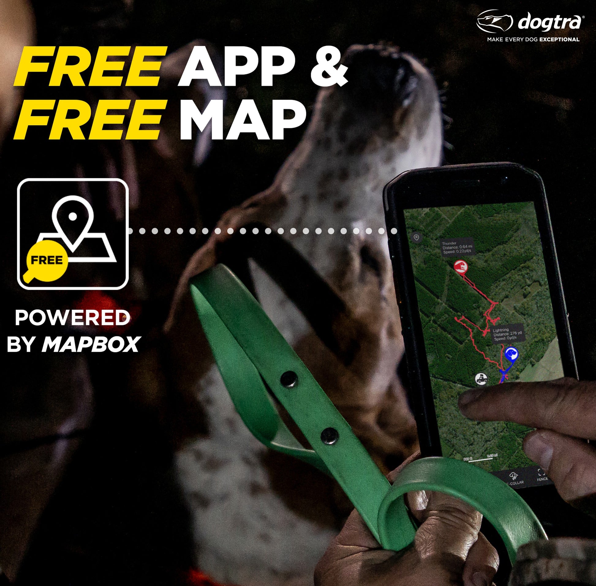 The PATHFINDER2 works with a FREE app based dog tracking system with no monthly subscription required, allowing users to track and train their dogs straight from their phone featuring offline maps access with no signal required. The Dogtra PATHFINDER2 App requires the Dogtra PATHFINDER2 system to operate. *Range may vary depending on the surroundings.