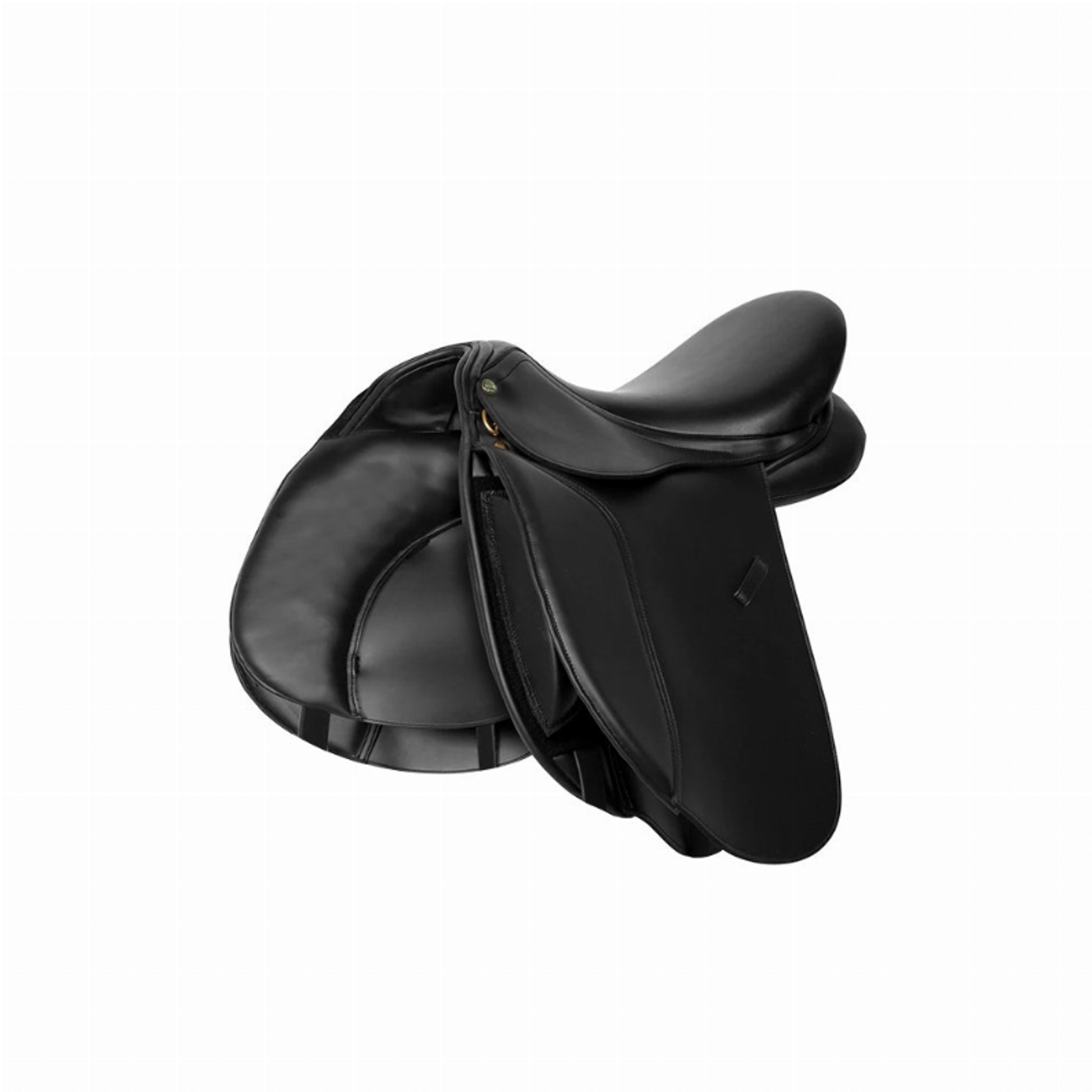 Henri de Rivel is proud to introduce the Vegan-X line of fine synthetic saddles! The Henri de Rivel Vegan-X Dressage Saddle is crafted to resemble exceptional leather, but make no mistake, this saddle is animal product- free. Get that classic, sleek look without breaking the bank or consuming animal products. This synthetic leather is low maintenance for the busy equestrian, light weight and worry-free for getting caught in the rain. Cleaning is a cinch, just gently rub a damp cloth after your ride, no conditioner or saddle soap necessary. With a medium deep seat and stabilizing knee rolls, the horse and rider connection will be as clear as a traditional saddle, without the hassle.